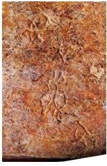 這種春游文化在昌樂(lè)骨刻19號(hào)獸骨殘片中可以清晰的看出,這是一幅頗為生動(dòng)的游玩圖,你看這骨片的最下方好象是一個(gè)頭戴草帽、甩著拐杖的老翁,正在悠然自得的遛彎。上邊好象是一個(gè)孕婦,正在信步向前,后面好象是其愛(ài)子,手中高甩著一根柳枝,或是一件玩具,正朝右方走去(這位老翁的形象,并被甲骨文和金文基本借鑒)。左側(cè)和對(duì)面似乎是兩個(gè)少年兒童,都在歡唱、蹦跳著,正朝對(duì)面方向雀躍而去。最上端好象是一組家庭出行圖,極似一位跨著步子,左手?jǐn)y著一位少兒的青年女子,正在邊走邊回頭向后說(shuō)著什么?后面是一位躬身大步向前傾聽(tīng)模樣的男子,可以看出,這是一家三口正出行游玩。這一家前行的方向與兩個(gè)少年和下邊這位老翁前行的方向相同,可能是那邊有什么表演、一處景觀或其他吸引他們的事件。因此筆者為其取名為“春游”圖。