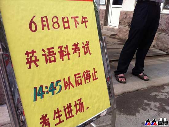 6月8日09:04 濟(jì)南 濟(jì)南七中 記者盛堃:下午的英語考試兩點(diǎn)四十五后停止入場