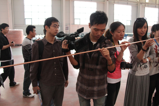在宜昌聯(lián)邦電纜有限公司流水線上記者們饒有興致地查看剛生產(chǎn)出來的電纜