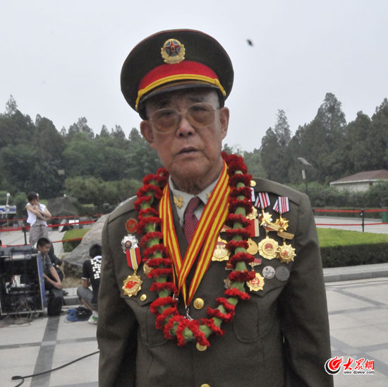 [提要] 6月17日上午,在參加“全國網(wǎng)絡(luò)媒體山東紅色老區(qū)行”啟動儀式的十名老兵中,有一名身穿舊軍裝、胸前掛滿勛章的老人引起了記者的注意。