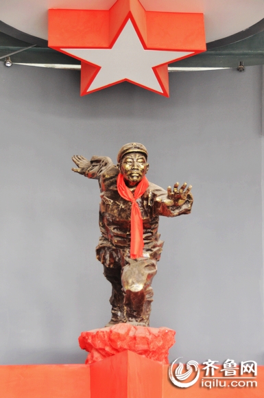 王杰紀(jì)念館大廳內(nèi)的王杰銅像(攝影 劉自勇)