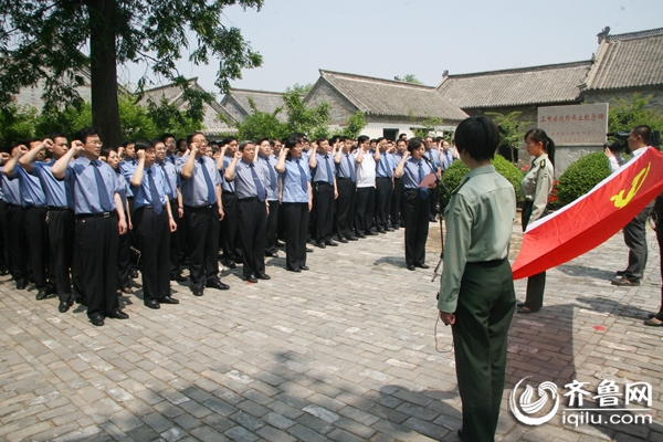 在“山東省政府成立紀(jì)念碑”前,干警們在省檢察院黨組副書記、常務(wù)副檢察長馬永勝的帶領(lǐng)下,面向鮮艷的黨旗,高舉右手,重溫入黨誓詞,高亢堅定、鏗鏘有力的宣誓聲響徹四周。