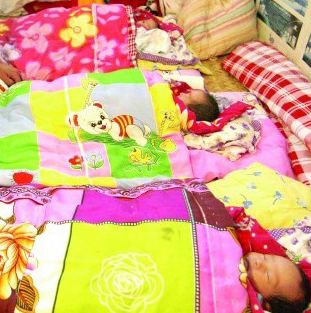 在陶華江姨媽家記者看到,院子里掛滿了剛洗完的尿布,陶華江正在給孩子收拾晾干了的尿布。見到記者到來,陶華江立即起身迎上來,強(qiáng)擠出一絲笑意示意讓記者進(jìn)屋,記者注意到這位曾經(jīng)當(dāng)了5年武警的硬漢,眼圈依然通紅,顯然還沒有從痛失愛妻的悲慟中走出來。在陶華江的指引下,記者在西側(cè)的房間里看到了三胞胎姐妹,三個(gè)小家伙齊刷刷的躺在炕上,小嘴不停地蠕動著,好像要跟記者說些什么,由于孩子屬于早產(chǎn)兒,現(xiàn)在的身體狀況還很虛弱,記者生怕孩子受到感染沒有進(jìn)入孩子房間里,只隔著房間探視了一下孩子!昂⒆蝇F(xiàn)在的狀況還可以,沒有人打擾的情況下都很聽話,可是不知道為什么,孩子只要一聽到相機(jī)的拍照聲就會哇哇大哭,餓了的時(shí)候也會哭,她們現(xiàn)在每天都會喝掉大半包奶粉,可能是身體需要,孩子們很能吃,這一點(diǎn)我心里還感覺到很欣慰,只要孩子身體好,能夠健康成長我就放心了,也能對得起孩子的媽媽了……”陶華江流著眼淚悲傷的對記者說。