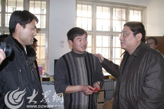 大眾網(wǎng)總編輯朱德泉給三胞胎姐妹帶來“壓歲紅包”,祝愿她們健康成長。(大眾網(wǎng)記者 隋喬 攝)