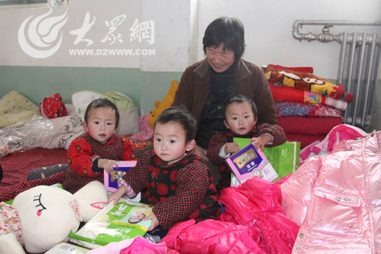 去年1月初,大眾網(wǎng)對平度馬戈莊鎮(zhèn)甲流孕婦楊翠翠生下三胞胎女兒后離開人世的消息進(jìn)行了連續(xù)報(bào)道,引起了社會各界和相關(guān)部門的強(qiáng)烈關(guān)注。隨后,大眾幫幫團(tuán)給三胞胎姐妹贈送了價(jià)值近10萬元的生活用品和奶粉,并做出“三年之約”,約定三年內(nèi)持續(xù)幫助三姐妹長大成人。時(shí)隔一年,大眾幫幫團(tuán)再次來到平度市馬戈莊村看望剛滿一周歲的三胞胎姐妹們。