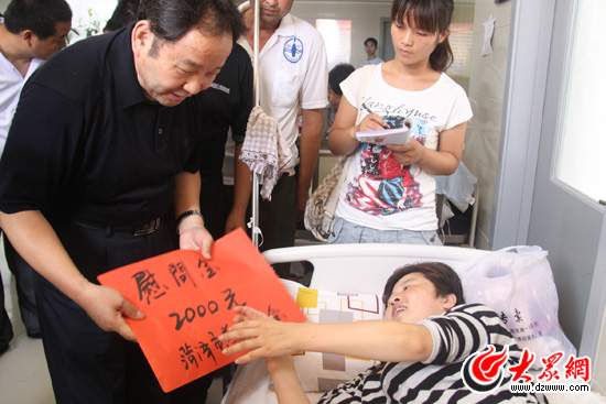 七月流火,卻熱不過“幫幫團(tuán)”成員的愛心,采訪車疾駛3個(gè)多小時(shí)后,終于抵達(dá)菏澤市立醫(yī)院。此時(shí),菏澤市慈善總會(huì)副會(huì)長兼秘書長陳慶峰、菏澤市慈善總會(huì)辦公室主任池宗民也聞?dòng)嵹s來。旋即,四樓產(chǎn)科病房李雪的床前,成了愛的海洋。