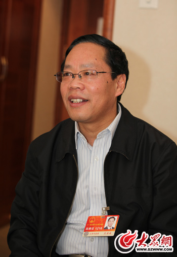 全國(guó)人大代表、臨沂市政協(xié)副主席王啟成接受大眾網(wǎng)采訪。
