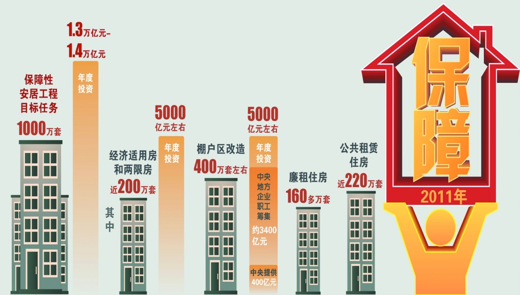 住建部副部長(zhǎng)齊驥透露,今年我國(guó)將建設(shè)1000萬套保障性住房和棚戶區(qū)改造住房,保障房數(shù)量可能將首次超過市場(chǎng)類住房。