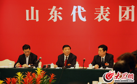 大眾網北京3月7日訊(特派記者 李冉 煒程 國棟 曹亮 王磊) 3月7日下午,參加十一屆全國人民代表大會第四次會議的山東代表團對媒體開放,吸引了75家中外媒體記者到場。此次對媒體開放的是山東團第二小組,全國人大代表、山東省委副書記、省長姜大明也在這個小組參加審議。代表審議政府工作報告結束后,各媒體記者就各自關心的有關山東的熱點問題紛紛提問,姜大明省長給予了認真答復,仔細進行了“解說”。姜大明省長現場回答了大眾網記者的提問,并回答了大眾網網友提出的八個問題,稍后本網將帶來詳細報道。
