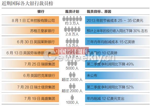 [提要] 近期,國(guó)際大銀行紛紛宣布裁員。幾個(gè)月來(lái),英國(guó)巴克萊銀行一直在裁員,其投行部門(mén)巴克萊資本自1月份以來(lái)已在全球范圍裁員約600人,而該行零售部門(mén)則裁員近2000人。