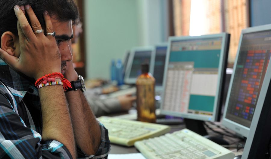 一名印度股民面對(duì)不斷下跌的股票愁容莫展。