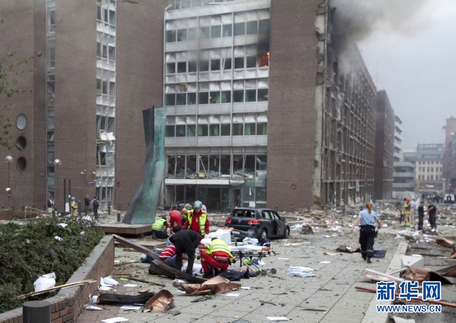 7月22日,救援人員在挪威奧斯陸市爆炸現(xiàn)場(chǎng)忙碌。奧斯陸市中心當(dāng)日發(fā)生爆炸,造成數(shù)人受傷。 新華社/美聯(lián)