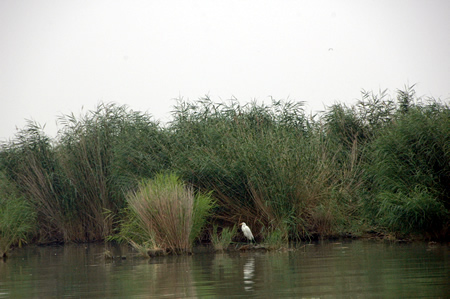 沙湖里野生蘆葦叢。