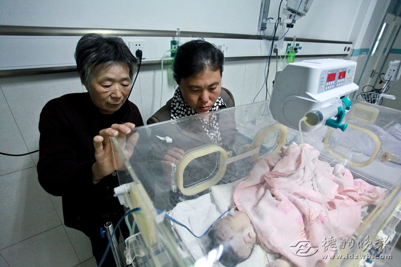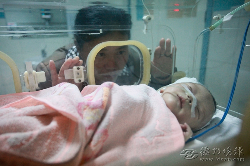 在市人民醫(yī)院小兒外科監(jiān)護(hù)室的嬰兒暖箱里,躺著一個(gè)剛出生沒(méi)幾天的男嬰,他幼小的身體上插滿了管子,眼睛微睜,攥著小拳頭,不哭不鬧。站在暖箱旁的武淑華一邊抹淚一邊說(shuō),“孩子剛做完手術(shù),到現(xiàn)在也沒(méi)脫離危險(xiǎn)期,這當(dāng)?shù)锏奶菪牧,怎么舍得把這么小的孩子扔了!边@個(gè)男嬰就是武淑華娘家人在10月22日早上撿到的患病棄嬰。