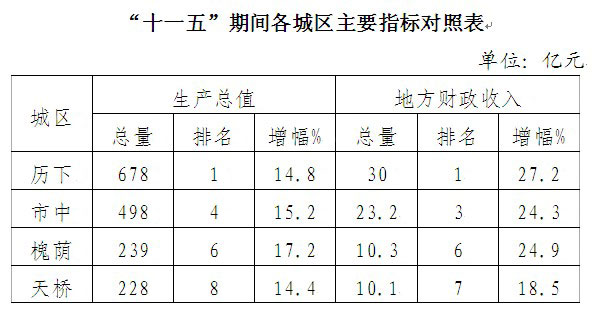 總體上看,“十一五”期間我區(qū)國民經(jīng)濟(jì)和社會(huì)發(fā)展取得了顯著成績,但是與其他城區(qū)相比還存在較大差距(詳見下表)。