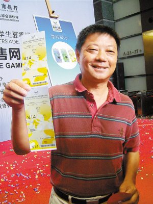 “等了半個多小時,終于買到票了!”昨日上午,林先生有幸成為大運會賽事門票公眾銷售網(wǎng)點正式啟動后首位在現(xiàn)場購得門票的觀眾,他花了200元在招行窗口購買了兩張?zhí)飶經(jīng)Q賽的入場券。林先生高興地告訴記者:“今天路過這里,正好看到大運賽事開始售票了,如愿買到票,我將帶著妻子一起觀賽!”