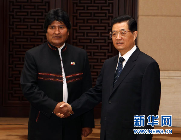 胡錦濤會見玻利維亞總統(tǒng)莫拉萊斯