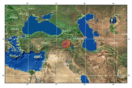 據(jù)中國地震臺網(wǎng)測定,北京時間2011年10月24日4時45分在土耳其(北緯38.6,東經(jīng)43.2)發(fā)生6.0級地震,震源深度10公里。