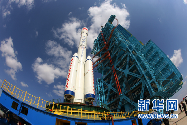 9月20日,天宮一號目標飛行器、長征二F運載火箭組合體以每小時22米左右的速度,行進1500米,于10時09分鐘到達發(fā)射架。當日,中國載人航天工程新聞發(fā)言人宣布,我國將實施載人航天工程首次空間交會對接任務,執(zhí)行任務的天宮一號目標飛行器、長征二F運載火箭組合體已從酒泉衛(wèi)星發(fā)射中心垂直總裝測試廠房順利轉(zhuǎn)運至發(fā)射區(qū)。天宮一號將于9月27日至30日擇機發(fā)射。新華社記者秦憲安攝