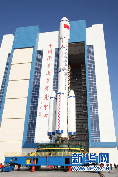 資料圖片:天宮一號目標飛行器、長征二F運載火箭組合體第一次出現(xiàn)在陽光下(9月20日攝)。 9月20日,中國載人航天工程新聞發(fā)言人宣布,我國將實施載人航天工程首次空間交會對接任務,執(zhí)行任務的天宮一號目標飛行器、長征二F運載火箭組合體已從酒泉衛(wèi)星發(fā)射中心垂直總裝測試廠房順利轉(zhuǎn)運至發(fā)射區(qū)。 新華社記者 秦憲安 攝