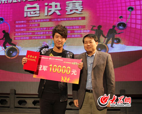 山東省網(wǎng)絡(luò)文化辦公室主任劉致福為冠軍曹寅頒獎。