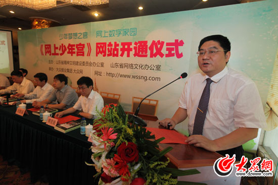 中央文明辦未成年人思想道德建設(shè)工作組副組長張志勇,中央文明辦未成年人思想道德建設(shè)工作組處長李衛(wèi)強(qiáng),中共山東省委宣傳部常務(wù)副部長、山東省文明辦主任姜鐵軍,大眾報業(yè)集團(tuán)社長、黨委副書記許衍剛,山東省網(wǎng)絡(luò)文化辦公室主任劉致福,大眾報業(yè)集團(tuán)黨委常委、副總編輯郝克遠(yuǎn),山東大眾傳媒股份有限公司(大眾網(wǎng))董事長、總經(jīng)理林忠禮等出席“網(wǎng)上少年宮”開通儀式,大眾網(wǎng)總編輯朱德泉主持了儀式,大眾網(wǎng)育才之星小記者俱樂部的兩位小記者和張志勇、姜鐵軍、許衍剛、劉致福等領(lǐng)導(dǎo)一起開通網(wǎng)站。