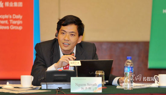 《柬埔寨之光報》主編阮沙勒發(fā)言 人民網(wǎng)記者 翁奇羽 攝