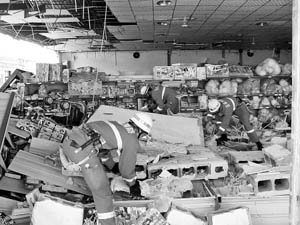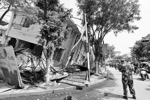 盈江縣城內(nèi)許多房屋因地震坍塌。