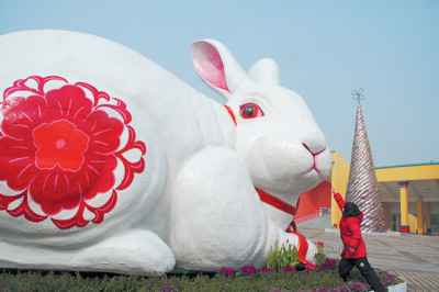 高達(dá)6米、長(zhǎng)約10米、重達(dá)5噸,目前國(guó)內(nèi)最大的兔年吉祥物玉兔昨日在長(zhǎng)沙世界之窗亮相,吸引了眾多游客的目光。 據(jù)介紹,這個(gè)玉兔由10多名工人花了兩個(gè)多月時(shí)間才制作完成,兔身上的花紋由畫(huà)家精心繪制。 周 斌 攝
