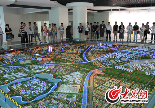 采訪團成員參觀鄭東新區(qū)規(guī)劃模型