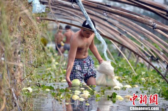 臺(tái)風(fēng)過(guò)后河道水位大幅上漲,導(dǎo)致農(nóng)田里的水無(wú)法及時(shí)排出,瓜地里的瓜全都浮了起來(lái) 徐小勇 攝