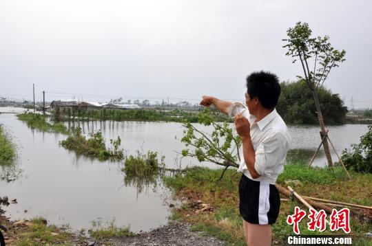 老湯是臺(tái)州人,到寧波已經(jīng)有20多年,一直在寧波鄞州夏荷村種地。記者見到他時(shí),他正與幾位老鄉(xiāng)一起在路邊查看水情。