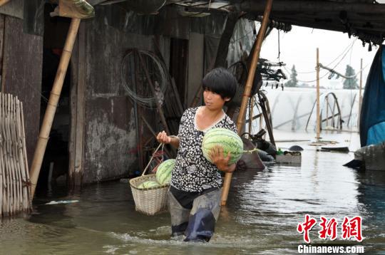 臺(tái)風(fēng)來(lái)的時(shí)候下了很大的雨,地里的積水已經(jīng)超過(guò)了她的膝蓋。蔡大嫂告訴記者,水稻和西瓜全泡在了水里,“地里還有很多西瓜來(lái)不及采摘,現(xiàn)在連成本也還沒(méi)收回來(lái)”。