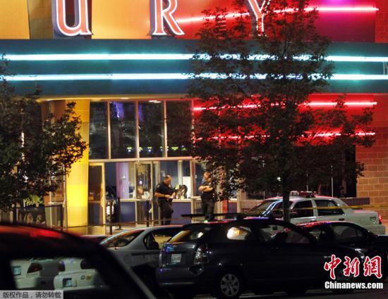 當(dāng)?shù)貢r(shí)間2012年7月20日,美國(guó)丹佛市舉行《蝙蝠俠前傳3:黑暗騎士崛起》的首映現(xiàn)場(chǎng)發(fā)生槍擊事件,造成12人死亡,58人受傷。圖為槍擊案現(xiàn)場(chǎng)。