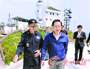 ▲韓國總統(tǒng)李明博(前右)10日登上與日本存在主權爭議的獨島(日本稱竹島)視察。
