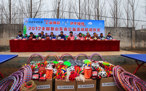 由國家體彩中心開展的“公益體彩快樂操場”2012全國暨山東省公益活動啟動儀式22日在臨沂市沂南縣啟動。據(jù)介紹,這一涉及全國100所中小學(xué)校的公益活動在我省將選取20所,捐贈包括籃球架、乒乓球臺等價(jià)值約20萬元的體育器材。