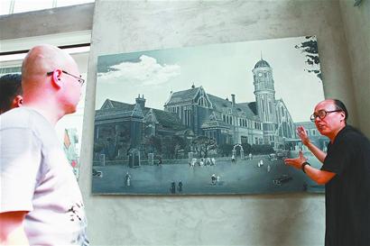 昨日,在濟南老商埠區(qū)的一處文化會館中,泉城首幅以描繪老濟南火車站場景為主題的油畫在此亮相,引來多位參觀者駐足觀看。據(jù)了解,這幅畫長 2.5米、寬1.5米,由濟南歷史民俗學者高人德民所繪制。(范良 攝)
