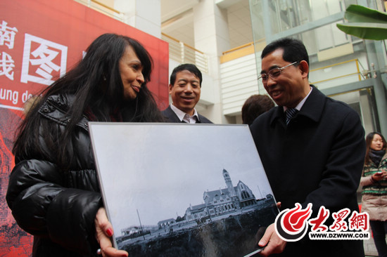 大眾網(wǎng)濟(jì)南12月5日訊(記者 王磊 趙洪棟 隋喬)“祖父珍藏的老照片在濟(jì)南展出一直是全家人愿望,這些照片屬于大家……”今天上午,濟(jì)南老火車站設(shè)計(jì)者的孫女西維亞夫婦來(lái)到山東建筑大學(xué)圖書館,參加“菲舍爾與濟(jì)南老火車站暨山東建筑大學(xué)傳承建筑歷史文化實(shí)踐”圖片展。在發(fā)言最后,當(dāng)西維亞用漢語(yǔ)說(shuō)出“謝謝”時(shí),她被現(xiàn)場(chǎng)觀眾的熱情感動(dòng)得再次落淚,在與市民分享這些百年老照片過(guò)程中,西維亞說(shuō),自己“很幸!,明年山東建筑大學(xué)鐵路建筑博物館建成時(shí),她希望能再次來(lái)到美麗的濟(jì)南。