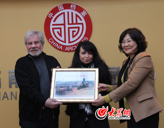 濟南檔案館向西維亞夫婦贈送館藏照片。