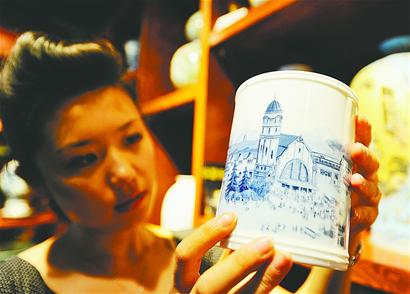 昨天,一位市民在欣賞一件燒制有“濟(jì)南火車站”圖案的青花釉中彩筆筒。據(jù)該筆筒的設(shè)計(jì)者、濟(jì)南景德弘寶陶瓷藝術(shù)館館長(zhǎng)劉向東介紹,建成于1911年的“津浦線濟(jì)南火車站”作為當(dāng)年濟(jì)南最有特色的建筑,已成為濟(jì)南人腦海中抹不去的印記。