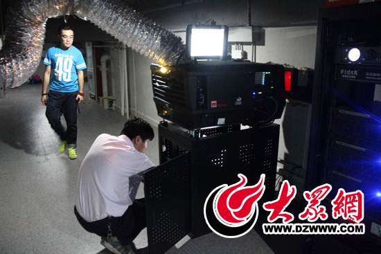 陳其峰和于浩洋檢查放映機(jī)工作情況。