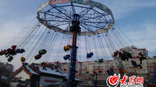 “有錢(qián)沒(méi)錢(qián),回家過(guò)年”,這句歌詞唱的不是吳橋人王明的生活。臘月十九,當(dāng)在外打工的人們千方百計(jì)往家趕的時(shí)候,高唐縣魚(yú)邱湖畔的廣場(chǎng)卻迎來(lái)幾輛來(lái)自吳橋的大卡車(chē),車(chē)上卸下的“鐵家伙”搭建起來(lái)后,是十多座游樂(lè)設(shè)備,其中“空中飛椅”和“碰碰車(chē)”是王明家的,也是她和老公在外拼搏的全部家當(dāng)。