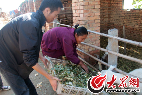 過(guò)了一會(huì),葉煥玲拿過(guò)一個(gè)裝滿(mǎn)青草和玉米秸大盆子,要給羊喂飼料,記者便上前幫助喂羊。一開(kāi)始,羊害怕生人,就縮回頭去不吃草,不一會(huì)又探出頭來(lái)吃?xún)上,記者一伸手又縮回去,結(jié)果羊角卡在了柵欄上動(dòng)彈不得,“撲棱撲棱”掙扎了老半天。