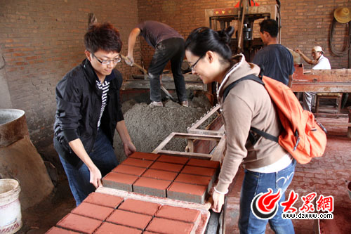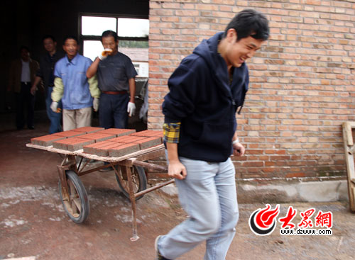記者們一起搬運(yùn)“新鮮出爐”的紅磚