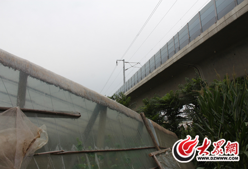 有些大棚建造在高鐵橋下,列車已經(jīng)過引發(fā)的巨大聲響使大棚內(nèi)頂部積聚的水珠紛紛落下,一時間棚內(nèi)下起了“小雨”