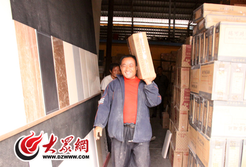 [提要] 塌陷的肩膀,粗壯的胳膊,一件滿是灰塵的迷彩服,一輛破舊的自行車,這是他們的行頭。十步的距離,50斤的重量,平均一天500箱瓷磚,這是他們的工作。今天早上,記者來到淄博市最大的陶瓷建材批發(fā)市場,走近普通搬運工這一建材市場最大的群體,親身體驗了這一群體的“假期”生活。