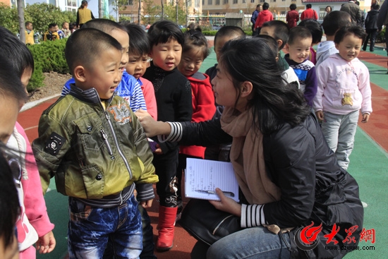大眾網(wǎng)走基層問民生采訪小組記者劉欣走進(jìn)棘洪灘下崖幼兒園進(jìn)行采訪。(曹亮 攝)