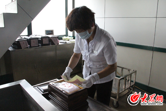 “咱們得向前看嘛,現(xiàn)在社會畢竟還是在進步的嘛!”生于1963年的業(yè)務(wù)科董科長安慰小丁說。董科長告訴大眾網(wǎng)記者,因為她的父親就是濟南市殯儀館的老職工,所以小時候她也挨過別人的白眼!暗液苄疫\,有自己的一群朋友,現(xiàn)在大家出去聚的時候都愿意叫上我,說沒有我不熱鬧!”董科長這樣說。