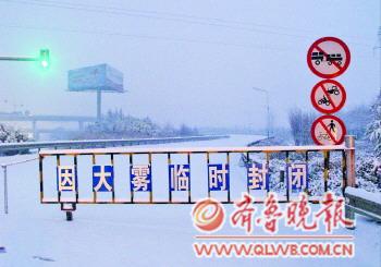 ◤21日早晨,繞城高速濟(jì)南東入口,交警部門將入口封閉! ”緢(bào)記者 周青先 攝
