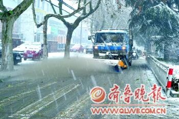 ▲為方便市民出行,菏澤市政管理處從下午3點(diǎn)開始,組織兩輛推雪車對(duì)城區(qū)中華路等主要干道進(jìn)行清掃!”緢(bào)記者 李德領(lǐng) 攝影報(bào)道